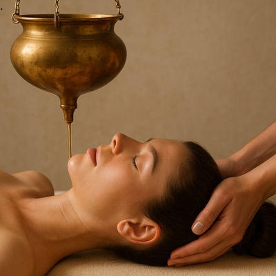 Shirodhara is an Ayurvedic therapy where warm oil flows over the forehead’s 3rd eye, calming the nerves, relieving headaches, restlessness, and insomnia, and deeply relaxing the mind and body.